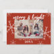 Feliz de fotos da família minimalista moderna e cartão de Natal brilhante. Possui fontes elegantes de script de caligrafia Feliz & Brilho e flocos de neve. Personalize seu nome de família e ano para um cartão de Natal personalizado.