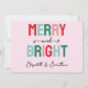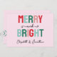 Feliz e Brilho! Cartão festivo de férias com tons cor-de-rosa e verdes.