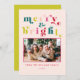 Este cartão de Natal multicolor tem uma fonte de versão retrô de tendência. Personalize-o com sua foto de família, sua mensagem especial de feriado e os nomes de seus familiares. Você pode mudar a cor do fundo. Celebre as férias com esta coleção alegre e alegre com sua família e seus filhos com esses presentes perfeitos para seus entes queridos.