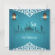 Cartão De Festividades Feliz Eid Mubarak White Cresk Star Mesquita Azul