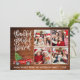 A Placa de Férias de Colagem de Fotos 4, Feliz e Grata, do Script de Caligrafia Moderna inclui um Caminhão Vermelho Vintage com Aquarela com Árvore de Natal. Impressão de madeira rustica.