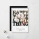 Uma tomada bem moderna da sua saudação de Natal este ano, este efeito de tipografia de aparência tipo "espiã-boo" recortado faz da sua foto parte da design. Uma grande carta corajosa diz "FELIZ FELIZ TUDO" com seu retrato espiando as letras. Funciona melhor com fotografias sombreadas mais escuras e com fechos que enchem a foto.
