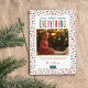 Cartões de foto de Natal impressos personalizados modernos com um modelo DIY simples para personalização. Este design festivo apresenta uma tipografia colorida e um fundo abstrato de um ponto bonito em cores vermelho, verde, dourado e rosa. Adicione fotos da sua família, saudações pessoais, nomes e o ano. Use as ferramentas de design para editar as fontes e as cores. O verso tem espaço para adicionar mais fotos e texto.