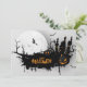 Cartão de Boas Festas de Halloween Casa Assombrada, Bruxa Voadora e jack-O-Lantern Espalhe alegria, compartilhe felicidade, tudo de bom e sempre feliz! Cartões de Natal projetados para alegrar o ano todo.