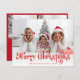 Um design vermelho festivo com fotos da família e uma cobertura vermelha. O texto e a mensagem podem ser personalizados.