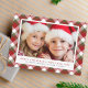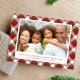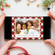 Feriado com a sua fotografia enquadrado num fundo animado de xadrez sazonal vermelho, verde e branco. Você pode personalizar a saudação de "Cheers & Feliz ano novo de Férias", seus nomes e o ano em simples tipografia.