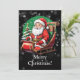 Um cartão de Natal que imediatamente traz o espírito de feriado para as suas mãos. Há um Papai Noel alegre, todos sorrisos, andando de trenó por uma noite de neve, e um feliz "Feliz Natal!" te cumprimentando com uma fonte festiva. O trenó é esfolado em cores clássicas de Natal - vermelhos vibrantes, verdes, e um toque de ouro. É a carta perfeita para ajudá-lo a aproveitar a temporada de férias e enviar um sorriso para os seus amados!