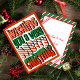 Este é um cartão festivo de Férias em faixas verdes e doces de canas vermelhas dizendo Desejando-lhe um Feliz Natal. É muito ousado e alegre. As costas são todas editáveis. Este exemplo de carta diz: Da nossa casa até à sua, A Família Henderson 2024