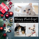 Este belo cartão de Natal de colagem fotográfica com 3 fotos, Feliz Feliz Feliz Dias em uma fonte moderna, seus nomes e o ano seriam perfeitos para enviar para seus amigos e família. A parte de trás é um preto correspondente. Todos adorarão tirar novas fotos de você e seus bebês de pele.