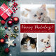 Este belo cartão de Natal de colagem fotográfica com 3 fotos, Feliz Feliz Feliz Dias em uma fonte moderna, seus nomes e o ano seriam perfeitos para enviar para seus amigos e família. A parte de trás é vermelha correspondente. Todos adorarão tirar novas fotos dos seus bebês de pele.