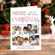 Cartão de saudação dobrado com fotos de feriado elegante, com "Feliz Natal" escrito em tipografia vermelha estilizada, "feliz ano novo" e uma saudação sazonal na tipografia moderna, 4 das suas fotos familiares favoritas e o seu nome. Personalize sua mensagem para a família e os amigos no dentro.