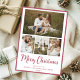 Este belo cartão de Natal de colagem de fotos com 4 fotos, Feliz Natal em uma fonte moderna de escrita de pincel, um sentimento personalizável, seus nomes e o ano seriam perfeitos para enviar para seus amigos e família. Todos adorarão tirar novas fotos da sua linda família. As fontes são modernas e limpas a rosa.