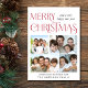 Cartão eletrizante de fotos de feriado com "Feliz Natal" escrito em tipografia vermelha estilizada, "feliz ano novo" e uma saudação sazonal na tipografia moderna, 4 de suas fotos de família favoritas e seu nome.