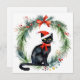 Cartão De Festividades Feliz Natal Aquarela Negra Gato e Ferro