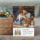 Árvores de Natal Felizes As Cartões de natal de Natal Simples mostram sua foto favorita em um fundo branco com o texto "Felizes Feriados" na tipografia do roteiro preto na moda. Personalize editando o texto nas caixas de texto fornecidas. Perfeito para o Natal enviar para amigos e família. Disponível como cartão de feriado em papel físico e como um download digital instantâneo imprimível. Elaborado por ©Evco Studio www.zazzle.com/store/evcostudio