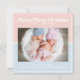 Cartão de saudação de fotos de feriado de "Feliz Feliz Natal", azul-bebê e rosa. Adicione sua foto e texto.