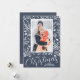Folhas brancas e pontos em um sotaque de fundo azul denim sua foto favorita com seus nomes e saudações em letras quíticas na parte inferior. Selecione Matte para o papel mais pesado e alta definição para melhor qualidade de impressão. MAIS CORES na nossa coleção.