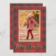 Feliz Natal em búfalos vermelhos e cinzas mostra sua foto em um fundo de folhas de ouro falso com seu nome em letra chic no fundo e sua mensagem pessoal no verso. Selecione Matte para o papel mais pesado e alta definição para melhor qualidade de impressão.
