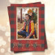 Feliz Natal em búfalos vermelhos e cinzas mostra sua foto em um fundo de folhas de ouro falso com seus nomes em letras quentes no fundo e sua mensagem pessoal no verso. Selecione alta definição para melhor qualidade de impressão de foto.