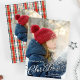 Cartão De Festividades Feliz Natal Clássico de Caligrafia Xadrez Vermelha