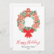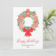 Este cartão de Natal é decorado com uma coroa de biscoitos em aquarela, folhagens festivas e bagas.