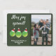 Um cartão de Natal engraçado com três brotos sorridentes de bruxelas e as palavras de Natal "Que alegria brota!". Este item inclui palavras personalizáveis. Esta placa inclui uma foto de modelo que deve ser substituída pela sua. Todas as palavras podem ser personalizadas. Fotografia © Storytree Studios, Stanford, CA