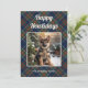 Cartão De Festividades Feliz Natal de Cachorro Azul Xadrez