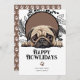 Feliz Howlidays Pug Dog Pet Dog natay cartão de Natal de Ricaso - projetado com uma magnífica tipografia Feliz Howlidays para a frente - um cartão de feriado divertido para cães temidos, seu membro peludo da família merece enviar suas próprias cartões de natal .. fácil de adicionar seu próprio texto e foto - apresentando um padrão de pata divertido e ousado para o fundo desenhado em preto e branco