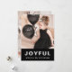 Esta saudação de fotos de Natal moderna e mínima apresenta um grande tipo alegre em uma elegante cinza prateada sobre fundo preto. Há uma foto de cheio na parte traseira desta placa de tendência.