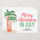 Vamos comemora o Natal em julho! Este cartão de Natal divertido apresenta palmeiras de aquarela decoradas com luzes e bolhas e diz Feliz Natal em julho na tipografia de na moda. Facilmente personalizável. À medida que criamos a nossa trabalho de arte, não encontraremos esta imagem exata de outros designers. Original Watercolor © Michele Davies.