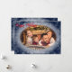 Um design de cartão de Natal moderno com sua foto de família destacou dentro a imagem oval azul-neve. Este design carregar vai para trás para a sua saudação de Natal personalizada, seus nomes e espaço para sua nota pessoal manuscrita.