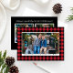 Envie cartões de natal com nossos cartões com fotos elegantes rústicos, com um padrão clássico de verificação/ xadrez de búfalos vermelho e preto, enquadrando sua foto de Natal horizontal favorita (3 x 5) na frente, com dois espaços extras de fotos quadradas no verso. Personalize o texto personalizado na frente e atrás com um "Feliz Natal" ou outras saudações, o sobrenome de sua família, o ano, uma mensagem pessoal e os nomes de seus familiares. Crédito da fotografia: SunFeixe Fotografia www.facebook.com/SunbeamPhotography