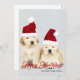 Este design de Natal mostra uma foto de dois cachorros de varejo Ouro vestindo chapéus de Natal vermelhos e o texto "Feliz Howlidays" escrito na popular tipografia vermelha com um nome de família adicionado abaixo. A parte traseira da placa foi deixada a vazio de você adicionar sua mensagem. Para personalizar, você pode adicionar sua própria foto e editar o texto. #natal #feriado #feriados #sazonal #cartões de fotos #festivos #cartões de dia #cartões #papelaria #personalizado #personalizado #personalizado #cão #estimador #Feliz #FelizHábitos #descansinho #cachorros #cãezinhos #bonitinhos #cãozinho #douradoRetriever #dourado