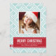 Um design de cartão de feriado único inspirado no mundo apresenta um padrão de diamante azul-aqua e branco-gelo-claro com uma aparência moderna de tecido rústico e uma faixa vermelha de fita que enquadra a foto. Personalize este na moda e cartão exclusivo com o seu retrato favorito e texto personalizado.