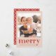 O design de Natal contemporâneo apresenta um cheque de xadrez vermelho e creme na parte de trás do cartão, e feliz em grande escala com a foto da sua família na frente deste cartão de Natal.