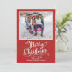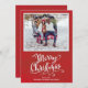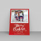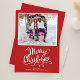 Este design apresenta um feliz Natal, com uma foto, fundo vermelho com elegante tipografia de script, com caligrafia, e um simples cartão com fotos minimalista, mínimo, de feriado, com belíssimas letras bonitinhas.