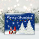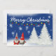 Deseje aos seus amigos um Feliz Natal com estes dois gnomos de Natal bonitos em frente à neve coberto de árvores. A parte de trás deste cartão apresenta a sua mensagem personalizada. Você pode personalizar facilmente a frente e o verso deste cartão de feriado único "Feliz Natal Gnomos" simplesmente adicionando seus detalhes.