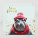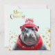 Cartão De Festividades Feliz Natal Hippo Santa Chapéu e cachecol