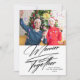 Deseje aos seus amigos e familiares um Feliz Natal com este moderno e simples cartão fotográfico de Natal. Design apresenta o script de caligrafia ''merrier'' em letra manuscrita de tendência, foto de solteiro e mensagem. Perfeito para casais, recém-casados etc.
