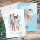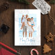 Esta design apresenta uma alegre praia de Natal, litoral moderna, foto de família 1, uma foto, azul-oceano clássico botânico tradicional, vida costeira no mar, elegante minimalista tropical único, uma moderna e elegante tendência simples, com moderna letra de roteiro de caligrafia, simples e mínima, cartão de férias de família, cartões com fotos de Natal
