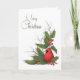 Cartão De Festividades Feliz Natal, pássaro cardinal vermelho, azevinho,