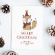 Cartão de Natal engraçado com raposa de floresta fofa para férias de inverno.