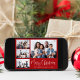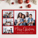 Placa lisa vermelha moderna, apresentando uma colagem de 4 fotos na frente, "Feliz Natal" em uma escrita branca em chic e seu nome e ano em uma simples tipografia branca. Adicione mais 2 fotos no verso e sua saudação personalizada à família e aos amigos.