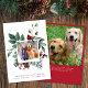 Um cartão de cartões de natal familiar bonito e moderno com sua foto enquadrado por uma aquarela inspirada na natureza de uma folhagem cardeal e sazonal de inverno. Você pode personalizar sua saudação de Natal, assim como seus nomes familiares e o ano em uma simples tipografia vermelha. No verso, adicione uma foto adicional e uma mensagem personalizada.