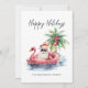 Entre no espírito de Natal com um cartão de Natal único com um Papai Noel relaxado em óculos escuros saltando em um flamingo rosa no oceano. Perfeito para enviar desejos de férias de praia, este cartão é ideal para quem vive em lugares tropicais como Flórida, Havaí, ou Bahamas, ou para quem simplesmente adora a praia. A cena inclui uma palmeira decorada com ornamentos, leves ondas oceânicas e uma pequena ilha atrás de Papais noeis. O cartão tem um encantador estilo rústico de aquarela. A combinação de fontes simples e tipografia de script lhe dá uma sensação casual, mas elegante. Perfeito para adicionar um pouco de surf e areia aos seus cartões de natal. Cartão de Natal Tropical de Praia de Natal, Festivo, Rosa Flamingo Flamingo Floaty Santa Claus. Disponível como cartão impresso ou como cartão digital para download que você pode enviar por e-mail ou que tenha impresso localmente!