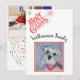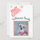 Saudações de Natal da sua Família com um Schnauzer fofo pintado em tons de cinza e azul - O retrato foi pintado em aquarela pelo designer. Olhos pretos brilhantes e um cachecol vermelho vão aquecer seu coração e tornar sua temporada mais alegre.