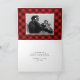 Envie cartões de natal para a família e amigos com este doce cartão de saudação de fotos de Natal Feliz. O cartão de férias dobrado exibe sua foto horizontal favorita de sangramento de cheio com "Feliz Natal" em uma folha de ouro falso, escrita à mão. Personalize a frente do cartão com fotos de férias adicionando seu nome e o ano. O dentro da placa apresenta espaço para uma segunda foto com um fundo de xadrez vermelho e preto e sua saudação personalizada exibida abaixo.