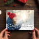 Esta design apresenta uma fotografia clássica de Natal Feliz, com um roteiro de caligrafia em na moda, um roteiro de prata, uma imagem de família tradicional, uma classe mínima minimalista simples, com um modelo de 1 layout de fotografia, um cartão de feriado horizontal de cheio, com tipografia clássica de caligrafia de rico, com um padrão de xadrez de inverno azul, vermelho e verde claro, um cartão de saudação de Natal elegante, elegante clássico sofisticado cartão com fotos