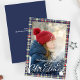 Cartão De Festividades Feliz Natal - Script de Caligrafia Marinho Xadrez