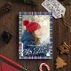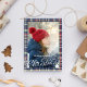 Esta design apresenta uma fotografia clássica de Natal Feliz, xadrez Azul e Vermelho de inverno, um roteiro de caligrafia na moda, uma imagem de família, típica, clássica mínima minimalista e simples, um modelo de layout fotográfico, com tipografia clássica de caligrafia rico, um cartão de saudação de Natal, um cartão com fotos clássico sofisticado e elegante, tradicional padrão tradicional clássico de tartan